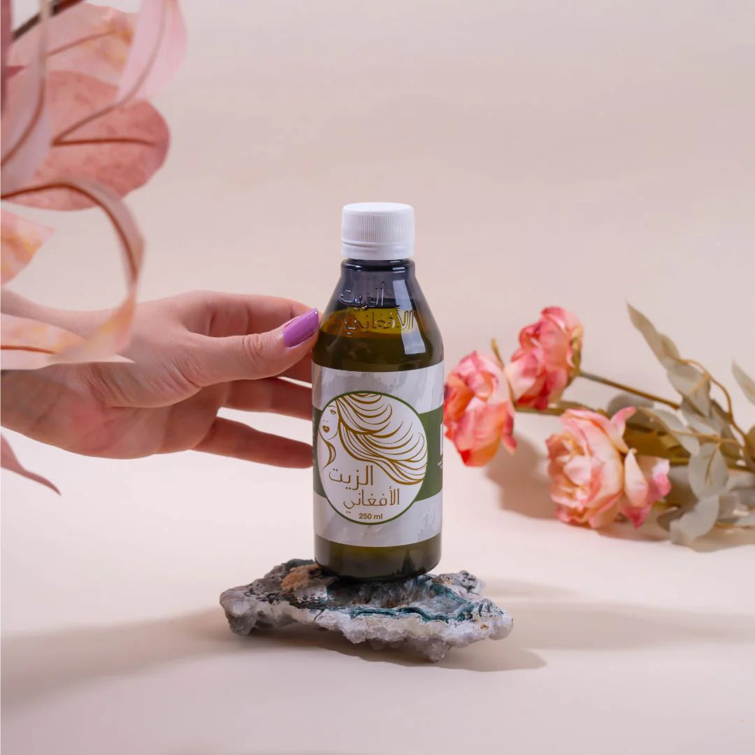 مع زيت الشعر الأفغاني الأصلي… استمتعي بشعر قوي، كثيف، وصحي من الجذور حتى الأطراف.