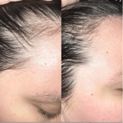كانت تعاني من فراغات في مقدمة رأسها وتحاول تغطيها دايماً. بعد شهرين من استخدام زيت الشعر الأفغاني، بدأ شعرها يملأ الفراغات وصارت تظهر بدون أي قلق.